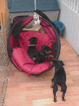 Na, die selbst gebaute Schaukel ist der Hit. Super zum schmusen und relaxen!