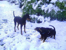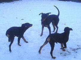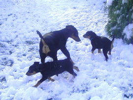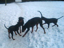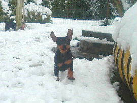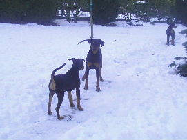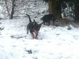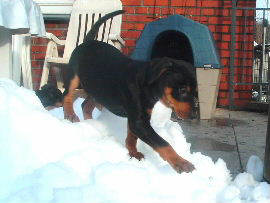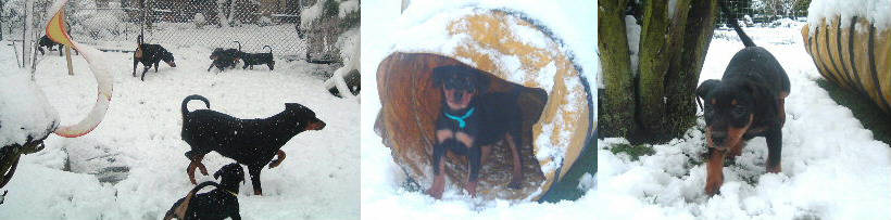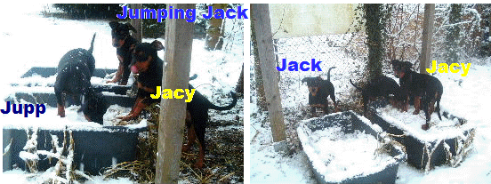 Es hat mal wieder geschneit!! Was für ein spass!! In diesen Kübeln waren mal Kürbisse, jetzt ist es ein Deutscher Pinscher Spielplatz!!