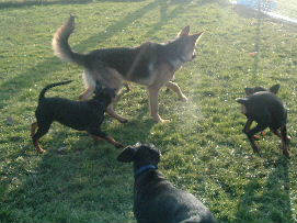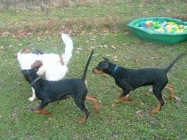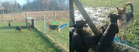Rennen und die Umgebung erkunden.................oh, wer bist du denn??? Los komm rein zu uns. Dann können wir zusammen toben!!