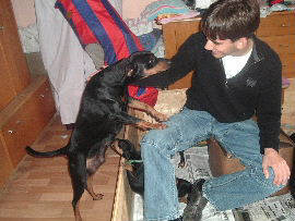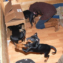 An einem Tau ziehen mit Walter!! ..............................um einen Karton kämpfen mit Emil und Walter..........und vieles mehr......