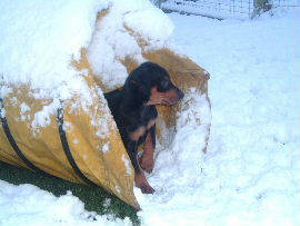 Mittler weile sind wir 14 Wochen alt, wir lieben den Schnee und das Toben!!