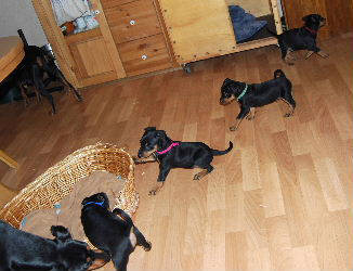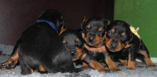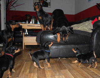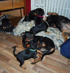 Es sind 7 süße Pinschis, 4 Rüden und 3 Hündinnen.
