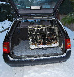 schnell Pipi machen gegangen. Dann sind wir schlafen gegangen, ich habe ihn in seine Schlafkiste neben meinem Bett gesetzt.