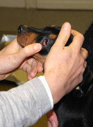 Erst untersuchen, Augen, Zähne, Ohren, Abhören und Fieber messen.