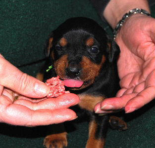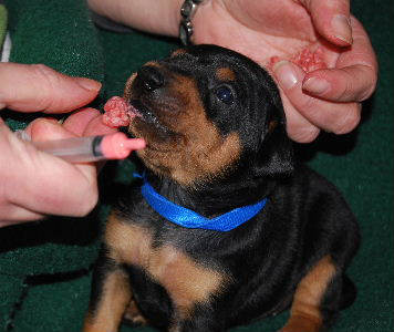 Wir haben unsere erste Wurmkur bekommen.....iiiiiigit........aber das Rinderhackfleich schmeckt uns super!!!