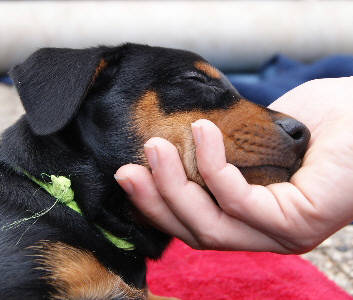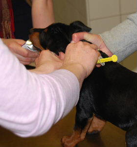 Erst wiegen, dann abhören, dann Fieber messen, dann die Ohren und die Zähne kontrollieren, das ist ja alles noch ok . Die Impfung ging ja auch noch, aber der Chip.......na ja, muss sein!